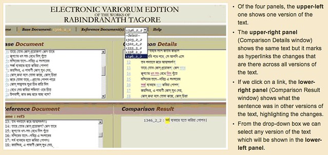 Rabindranath Tagore (1861 – 1941), the first nobel laureate of Asia, was arguably the most important icon of modern Indian Renaissance. This recent project on the electronic collation of Tagore texts, called 'the Bichitra project', is being developed as part of the national commemoration of the 150th birth anniversary of the poet (here's the official page). This is how the School of Cultural Texts and Records summarizes the project's scope: