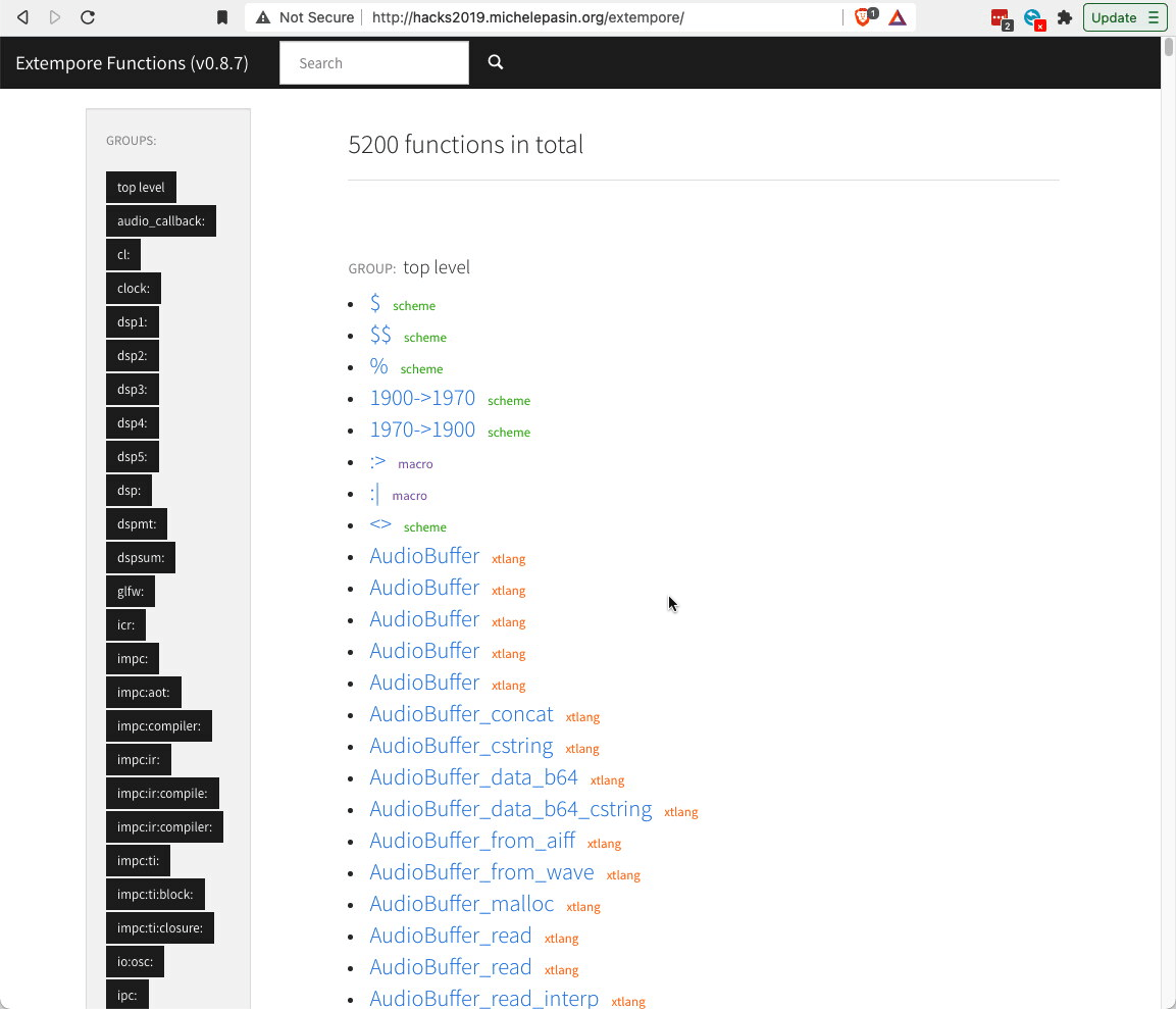 The Extempore functions explorer has been updated with the latest version of the Extempore programming language: v0.8.9
